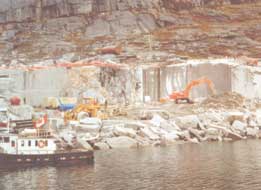 Anorthosite quarrying at Ten Mile Bay, near Nain, by Torngait Ujaganniavingt Corp.